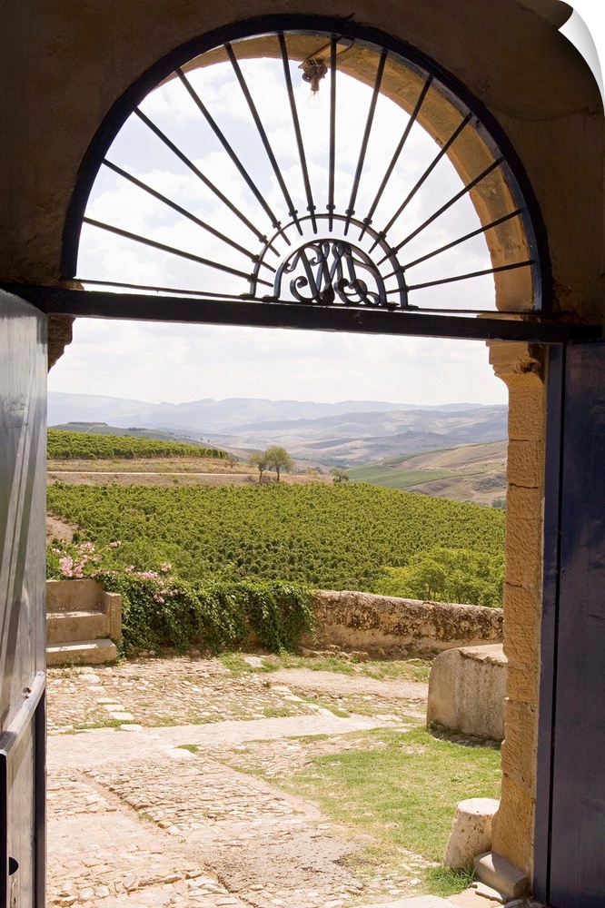 <p>Italy, Italia, Sicily, Sicilia, Sclafani Bagni town, Regaleali winery, view towards vineyards</p>
