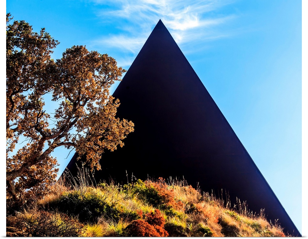 <p>Italy, Sicily, Castel di Tusa, The pyramid, 38th parallel in the Fiumara d'Arte outdoor sculpture museum.</p>