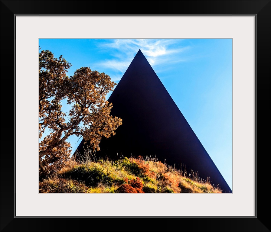 <p>Italy, Sicily, Castel di Tusa, The pyramid, 38th parallel in the Fiumara d'Arte outdoor sculpture museum.</p>