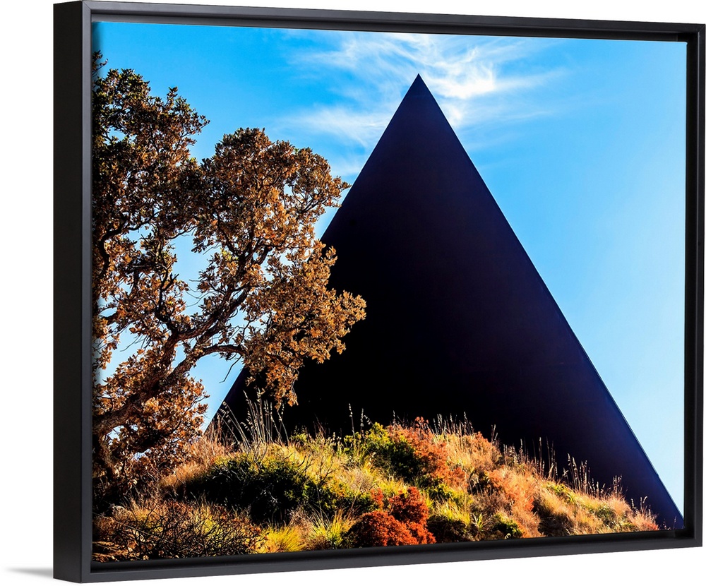 <p>Italy, Sicily, Castel di Tusa, The pyramid, 38th parallel in the Fiumara d'Arte outdoor sculpture museum.</p>