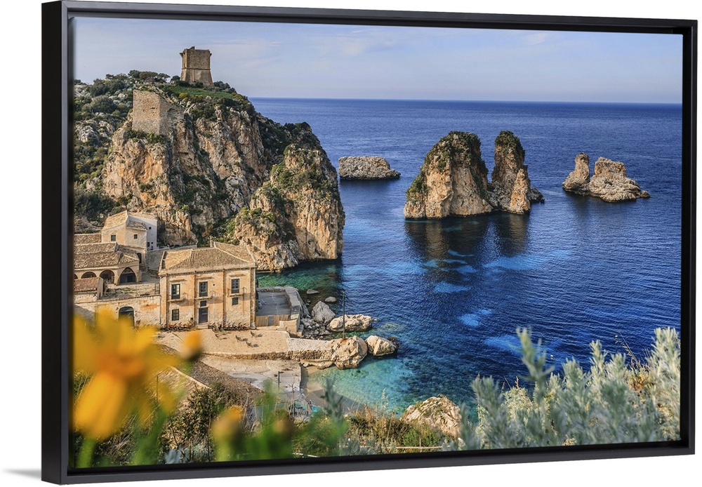 <p>Italy, Sicily, Trapani district, Scopello, Tonnara and faraglioni (stack rocks)</p>