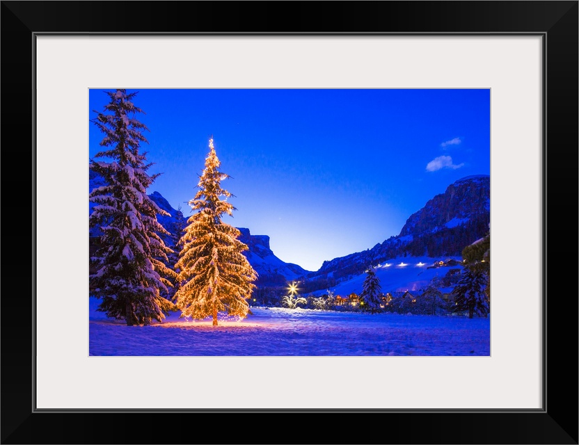 <p>Italy, Trentino-Alto Adige, Alps, Dolomites, Sellaronda, Alto Adige, Sudtirol, Bolzano district, South Tyrol, Alta Badia, Corvara, Christmas tree and Gardena Pass.</p>