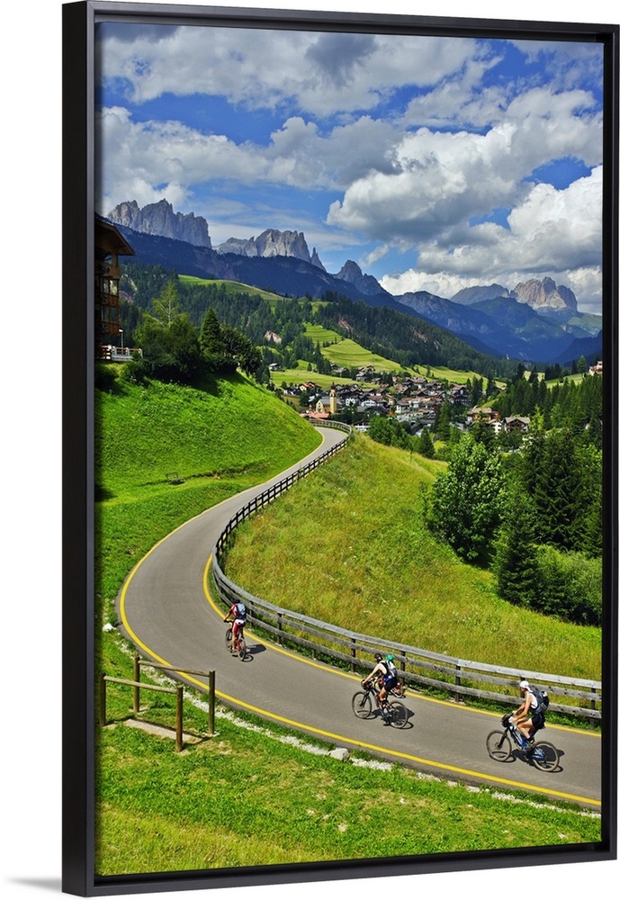 <p>Pista ciclabile della val di Fassa presso paese di Soraga con gruppi del Catinaccio, Larsec e Sassolungo-TN</p>