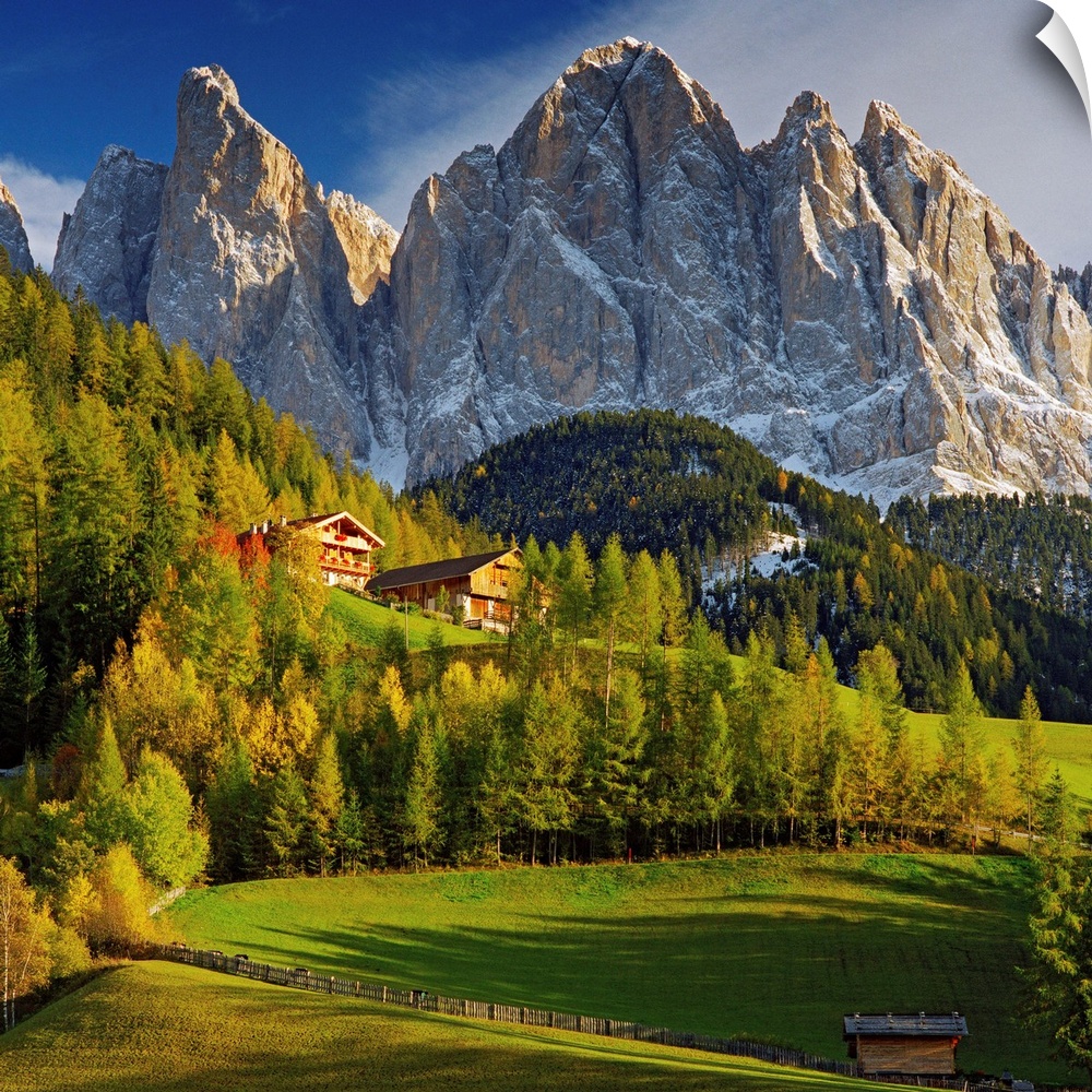<p>Italy, Trentino-Alto Adige, Mediterranean area, Alto Adige, S..dtirol, Alps, Dolomites, Bolzano district, South Tyrol, Val di Funes, Santa Maddalena, View towards Odle range (Geisler Gruppe)</p>