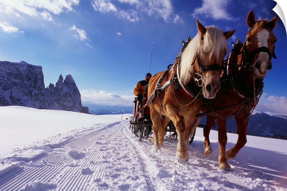 <p>Italy, Italia, Trentino-Alto Adige, South Tyrol, Alpe di Siusi (Seiser Alm), horse sledge</p>