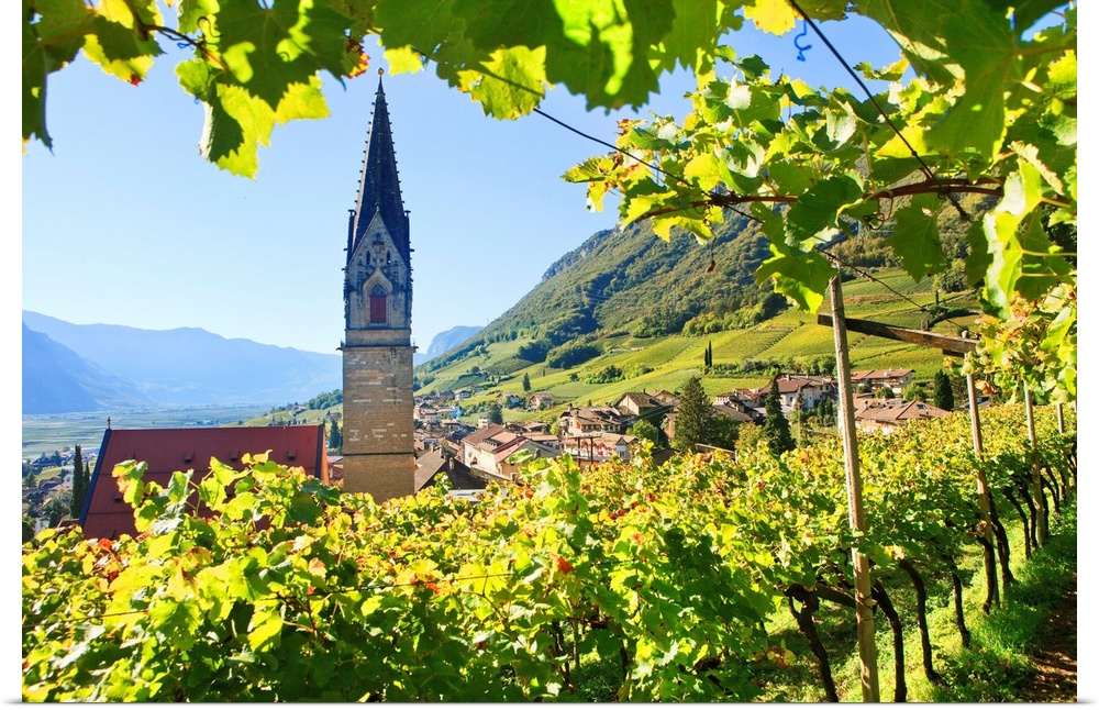 <p>Italy, Trentino-Alto Adige, Bolzano district, South Tyrol, South Tyrolean Wine Road, Termeno, Alps, Vineyards near the village.</p>