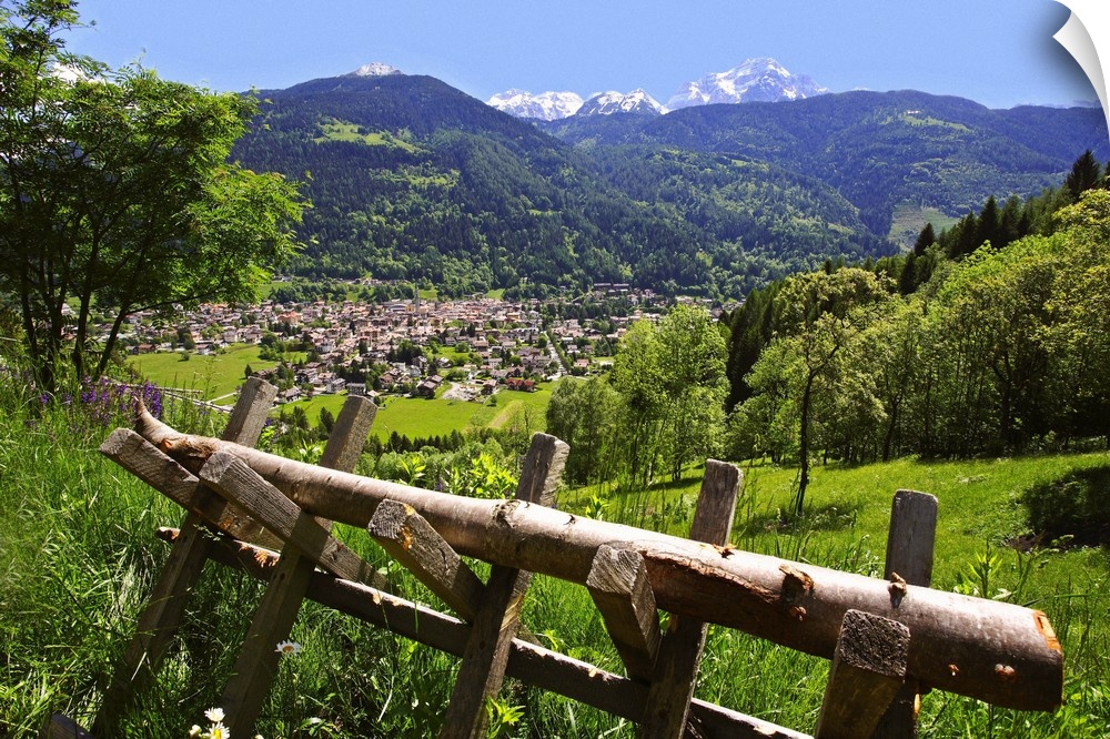 <p>Italy, Trentino-Alto Adige, Trentino, Val Rendena, Pinzolo, View of the town, Brenta-val Rendena group in the background</p>