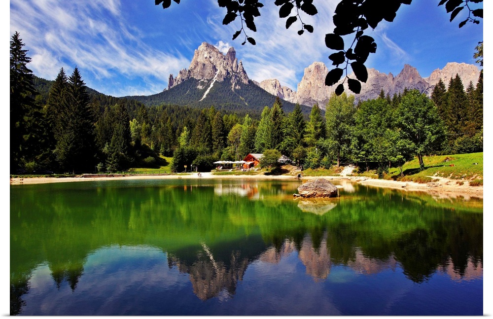 <p>Italy, Trentino-Alto Adige, Trentino, Dolomites, Alps, Parco Naturale Paneveggio Pale di San Martino, Val Canali, Welsperg lake and Pale di San Martino</p>