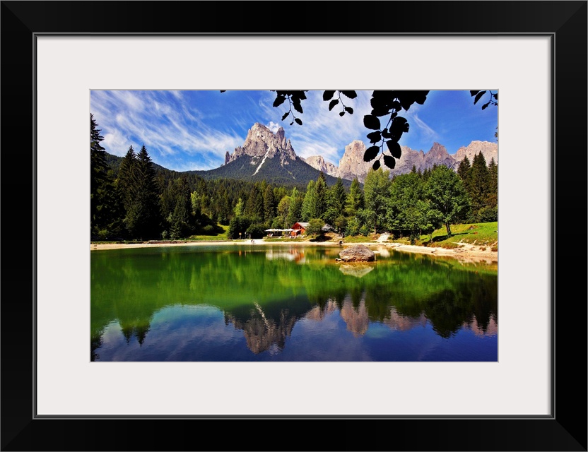 <p>Italy, Trentino-Alto Adige, Trentino, Dolomites, Alps, Parco Naturale Paneveggio Pale di San Martino, Val Canali, Welsperg lake and Pale di San Martino</p>