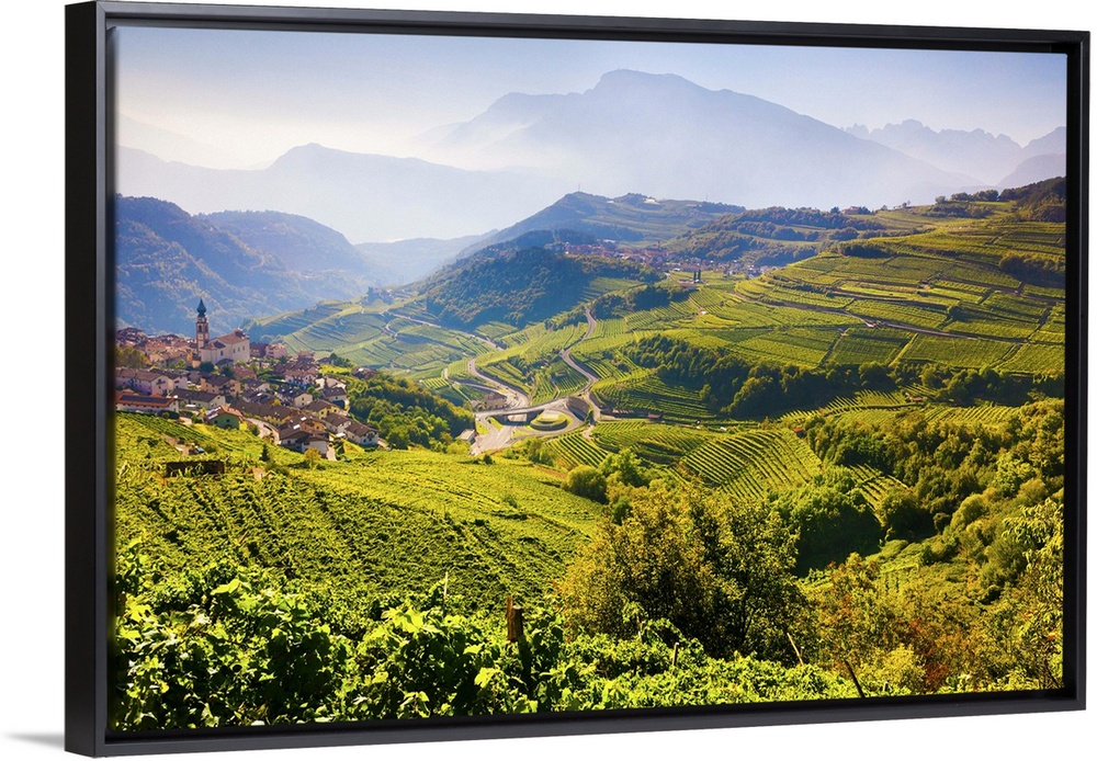 <p>Italy, Trentino-Alto Adige, Alps, Trento district, Trentino, Val di Cembra, Giovo, village of Giovo and vineyards of Val d'Adige.</p>