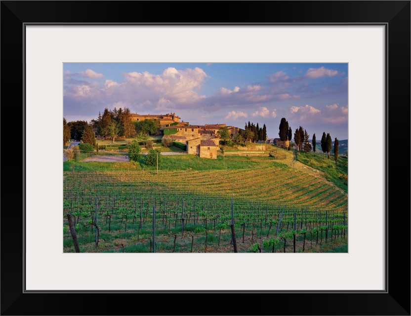 <p>The medieval village of Montevecchi surrounded by vineyards, perched on a hill near Radda in Chianti, one the main villages of the Chianti region.</p>