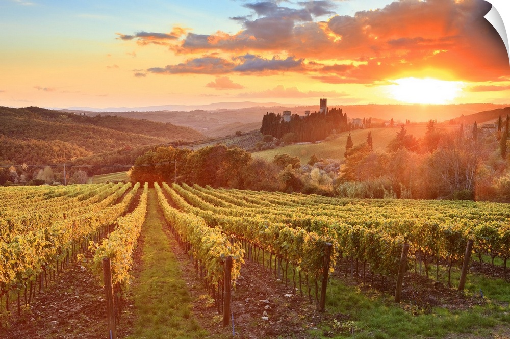 <p>Italy, Tuscany, Chianti, Tavarnelle Val di Pesa, Badia a Passignano, sunset</p>