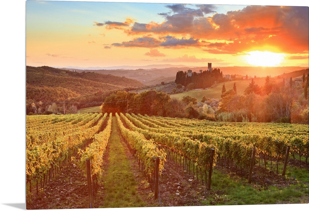 <p>Italy, Tuscany, Chianti, Tavarnelle Val di Pesa, Badia a Passignano, sunset</p>
