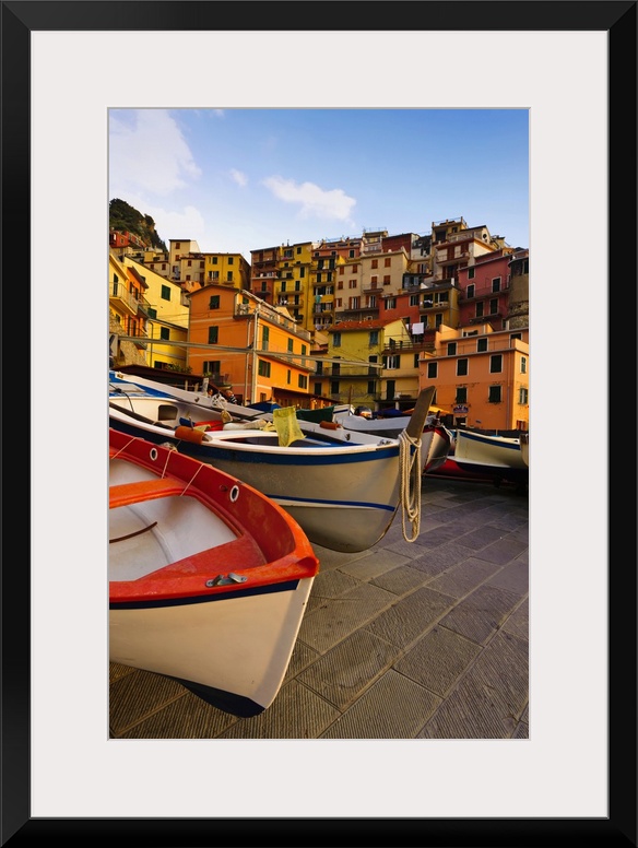 <p>Europe, Italy, Tuscany, Cinque Terre. Fishing boats at rest in Manarola in Cinque Terre.</p>