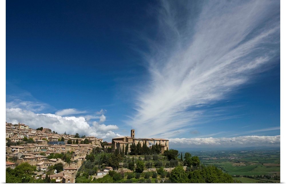 <p>Italy, Tuscany. Dramatic clouds over the hill town of Montalcino.</p>