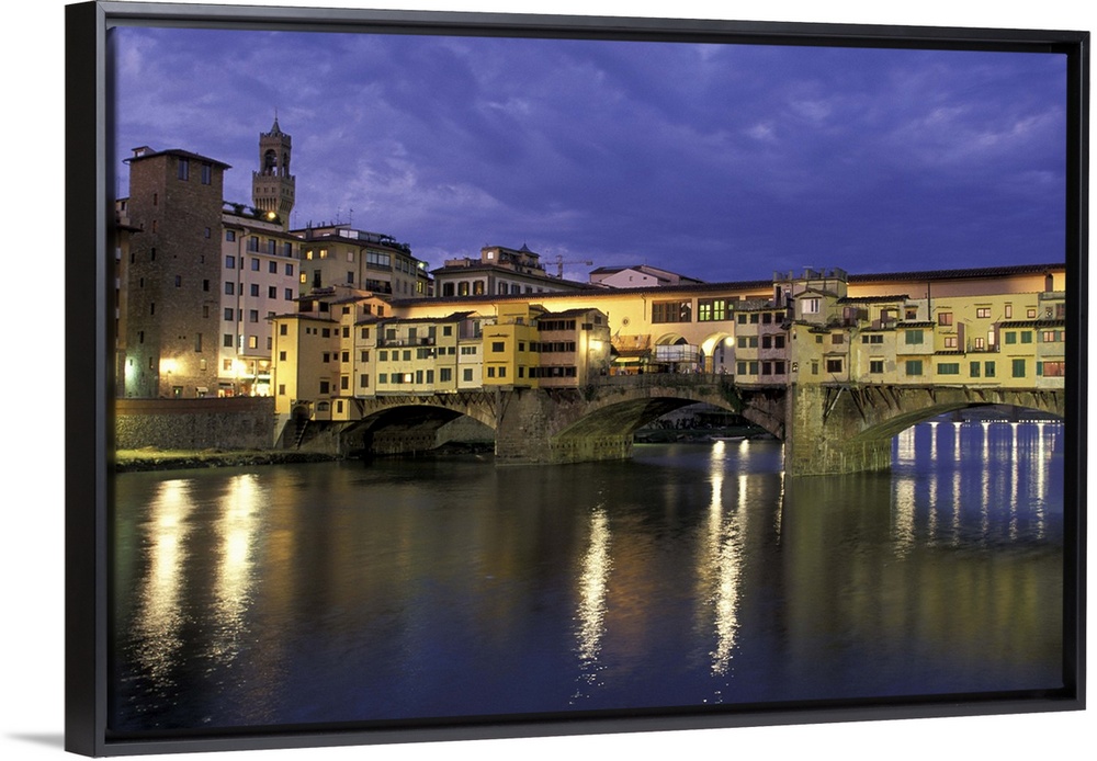 <p>Europe, Italy, Tuscany, Florence. Evening view of Ponte Vecchio from Arno River</p>
