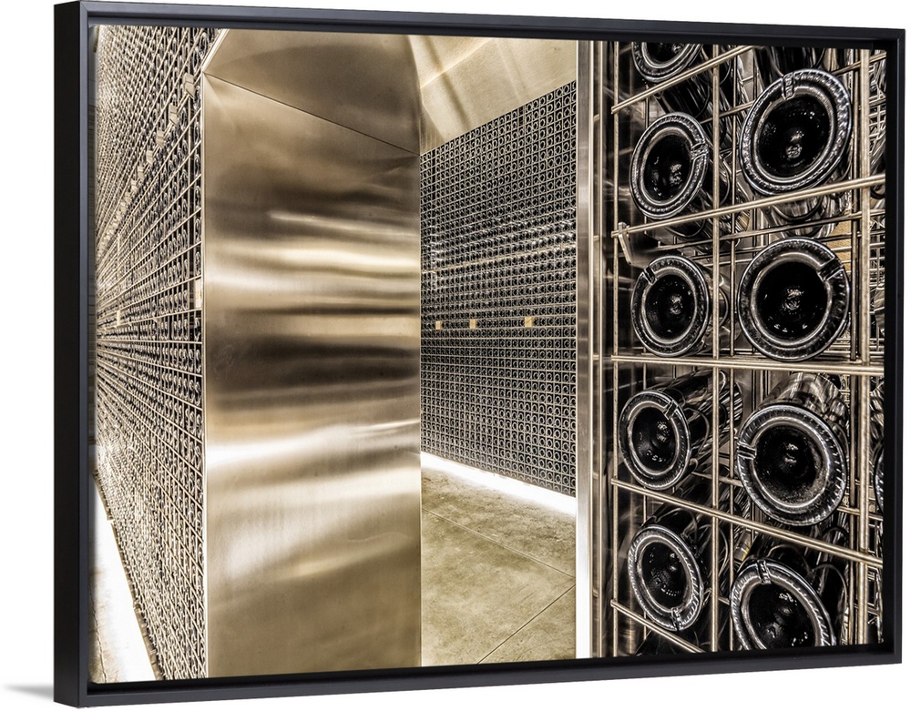 <p>Italy, Tuscany, Livorno district, Maremma, Bolgheri, Bolgheri wine area, Il Masseto Winery, view of the wine vault, the Masseto Caveau.</p>