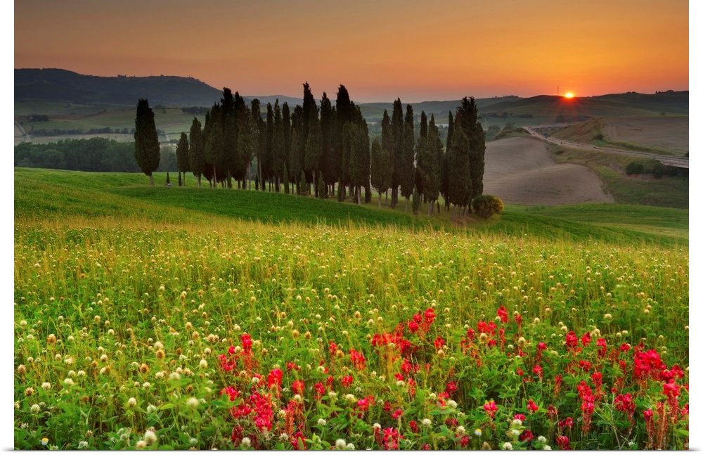 <p>Italy, Tuscany, Siena district, Orcia Valley, Cypress on the hill near San Quirico d'Orcia</p>