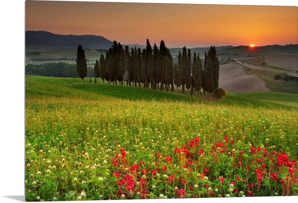 <p>Italy, Tuscany, Siena district, Orcia Valley, Cypress on the hill near San Quirico d'Orcia</p>