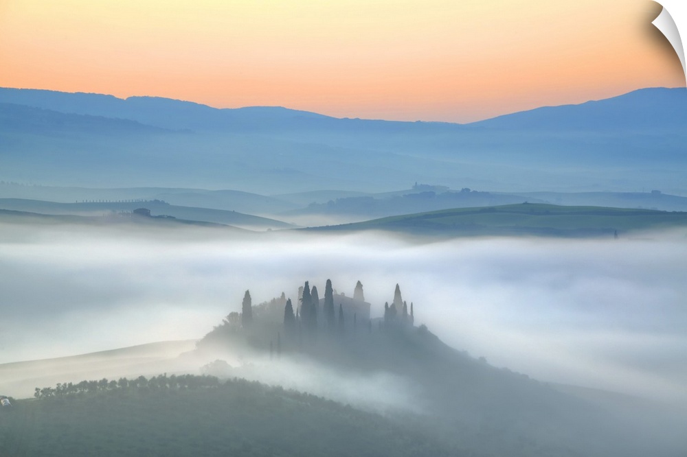 <p>Italy, Tuscany, Siena district, Orcia Valley, San Quirico d'Orcia, Podere Belvedere at sunrise</p>