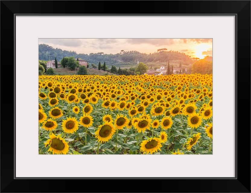 <p>Italy, Tuscany, Pisa district, San Miniato, Sunflowers on the countryside of San Miniato</p>