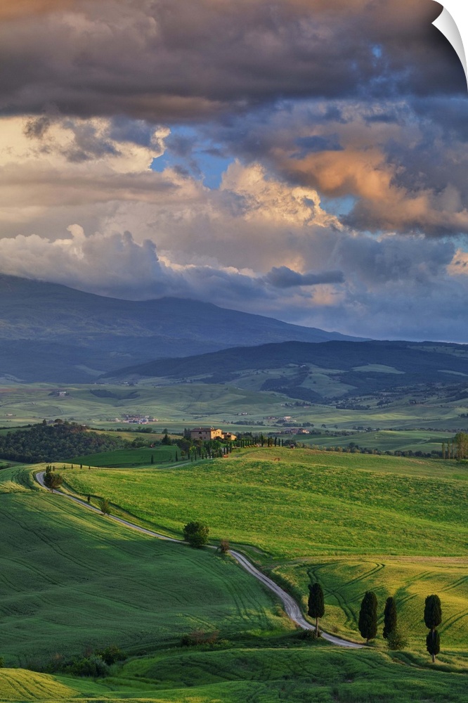 <p>Italy, Tuscany, Siena district, Orcia Valley, country road near Pienza.</p>