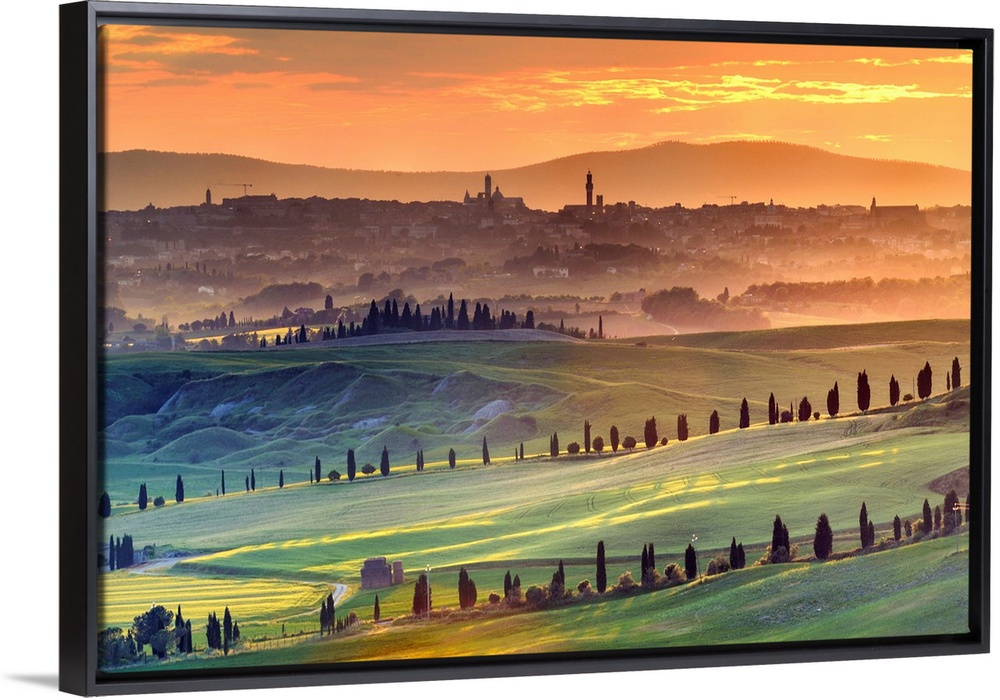 <p>Italy, Tuscany, Siena district, Siena, Siena in the background with the Sienese Crete in the foreground photographed at sunset.</p>