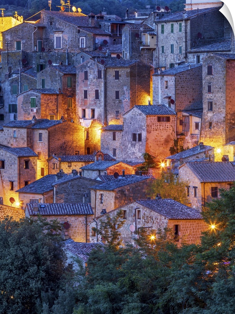 <p>Italy, Tuscany, Grosseto district, Maremma, Sorano, View of the historic center of the village perched on a rocky outcrop along the ancient Via Francigena.</p>