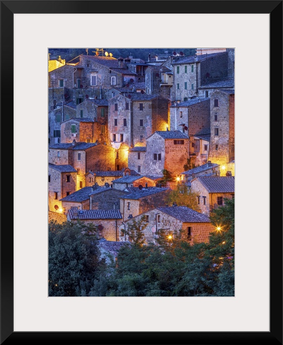 <p>Italy, Tuscany, Grosseto district, Maremma, Sorano, View of the historic center of the village perched on a rocky outcrop along the ancient Via Francigena.</p>