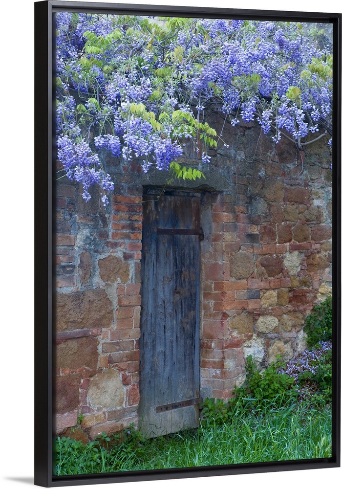 <p>Italy, Tuscany. Wisteria blossoms hang over an old doorway in Pienza.</p>