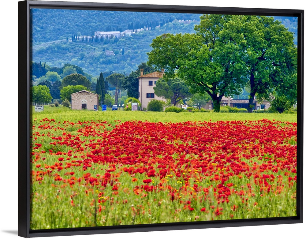 <p>Italy, Umbria, Assisi. View of Assisi across the poppy covered field.</p>
