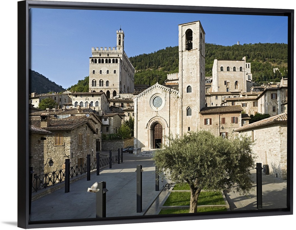 <p>Italy, Umbria, Gubbio, Mediterranean area, Perugia district, Travel Destination, View of Piazza S.Giovanni with S.Giovanni Church (in the middle), Palazzo dei Consoli (back on the left) and Palazzo del Podesta (back on the right)</p>
