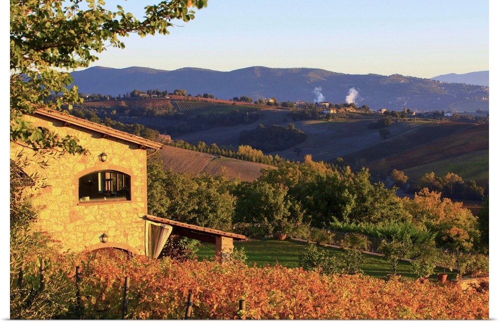 <p>Italy, Umbria, Mediterranean area, Perugia district, Autumnal Vineyards near Montefalco</p>