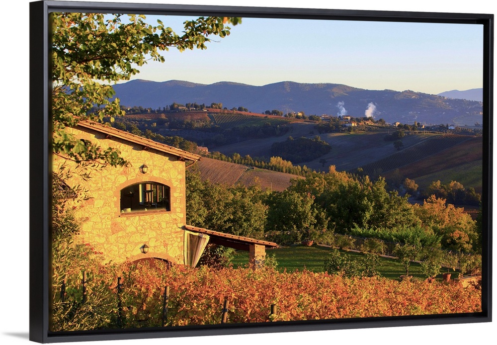 <p>Italy, Umbria, Mediterranean area, Perugia district, Autumnal Vineyards near Montefalco</p>