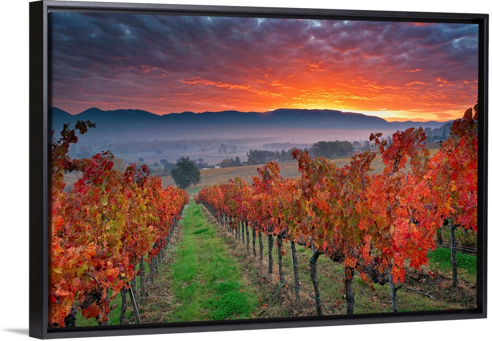 <p>Italy, Umbria, Perugia district. Autumnal Vineyards near Montefalco.</p>