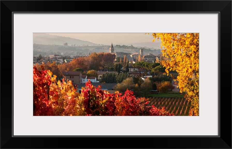 <p>Italy, Umbria, Mediterranean area, Sagrantino wine road, Perugia district, Bevagna, Town and Sagrantino vineyards</p>