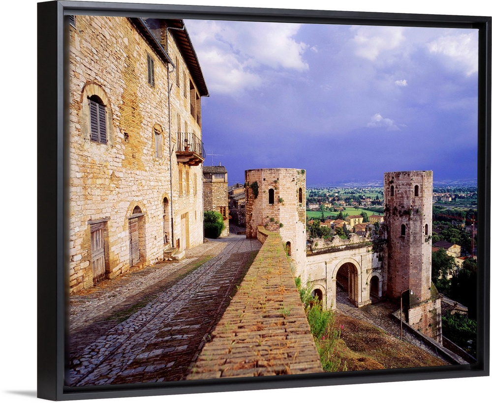 <p>Italy, Italia, Umbria, Spello town, Porta Venere (Gate) and Torri di Properzio towers</p>