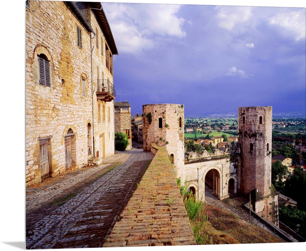 <p>Italy, Italia, Umbria, Spello town, Porta Venere (Gate) and Torri di Properzio towers</p>