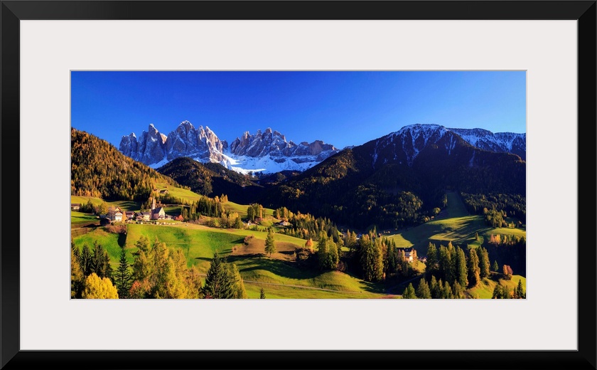 <p>Italy, Trentino Alto Adige, South Tyrol Region, Val di Funes and Santa Magdalena town with Puez Odle Dolomites Group (Puez Geisler) in the Background.</p>