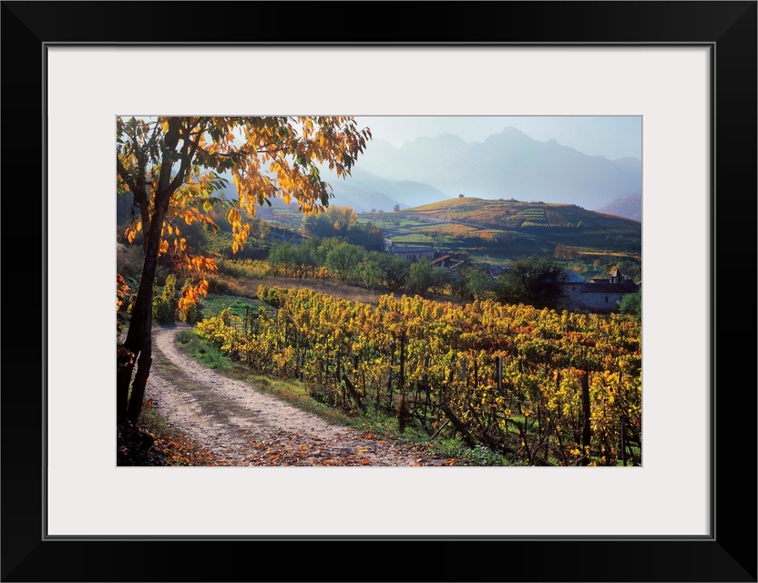 <p>Italy, Italia, Aosta Valley, Valle d'Aosta, Gran Paradiso National Park, vineyards near Aymavilles village</p>