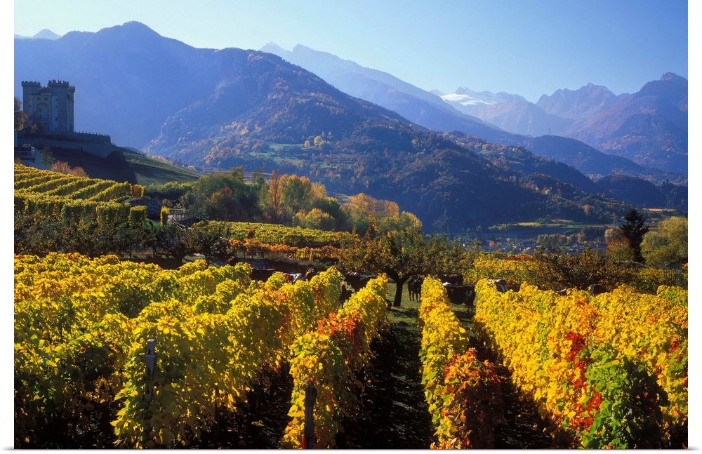 <p>Italy, Italia, Aosta Valley, Valle d'Aosta, Gran Paradiso National Park, vineyards near Aymavilles village</p>