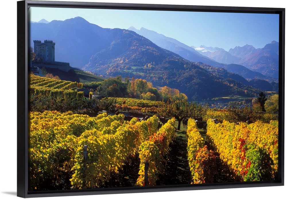 <p>Italy, Italia, Aosta Valley, Valle d'Aosta, Gran Paradiso National Park, vineyards near Aymavilles village</p>