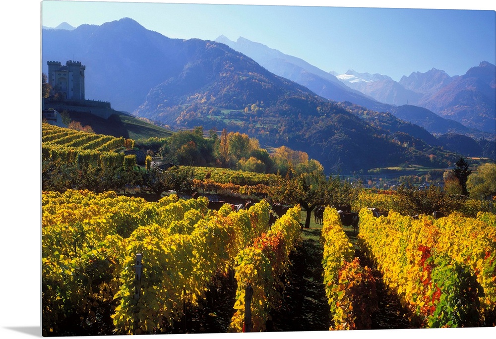 <p>Italy, Italia, Aosta Valley, Valle d'Aosta, Gran Paradiso National Park, vineyards near Aymavilles village</p>