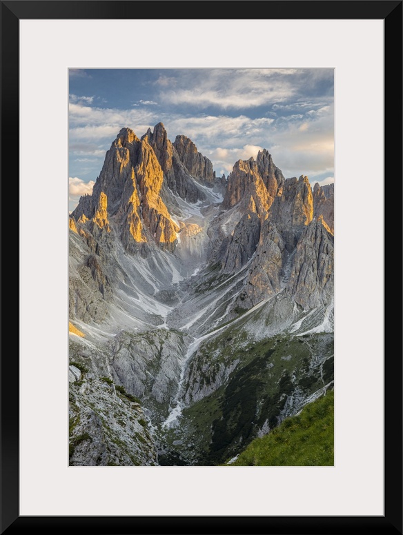 <p>Italy,Veneto,Belluno district,Auronzo di Cadore,sunset lights emphasize the spiers of the Cadini di Misurina group.</p>