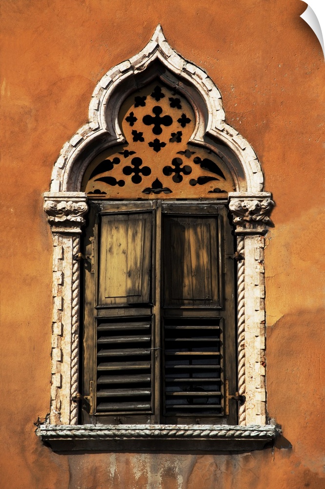 <p>Italy, Veneto, Verona, Western Europe, A tpical pointed window from the Veneto region.</p>