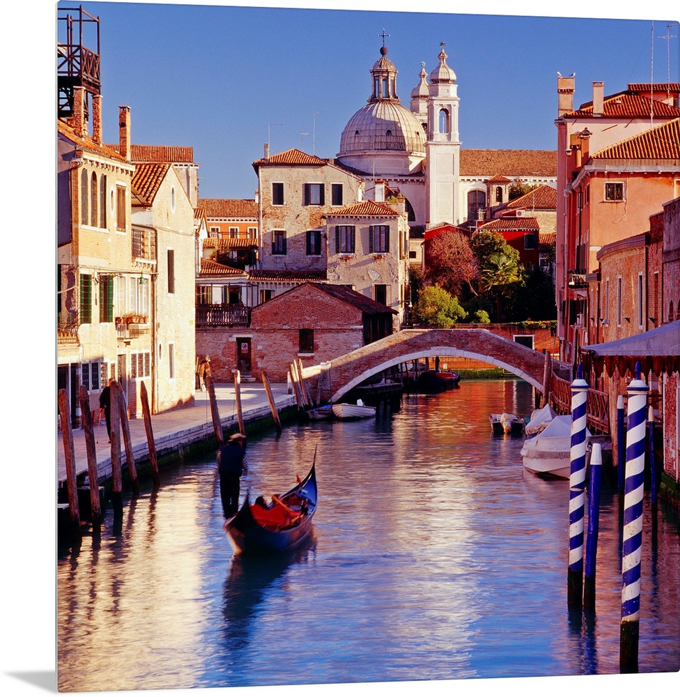 <p>Italy, Italia, Veneto, Venetian Lagoon, Venice, Venezia, Rio Ognissanti and San Trovaso church</p>