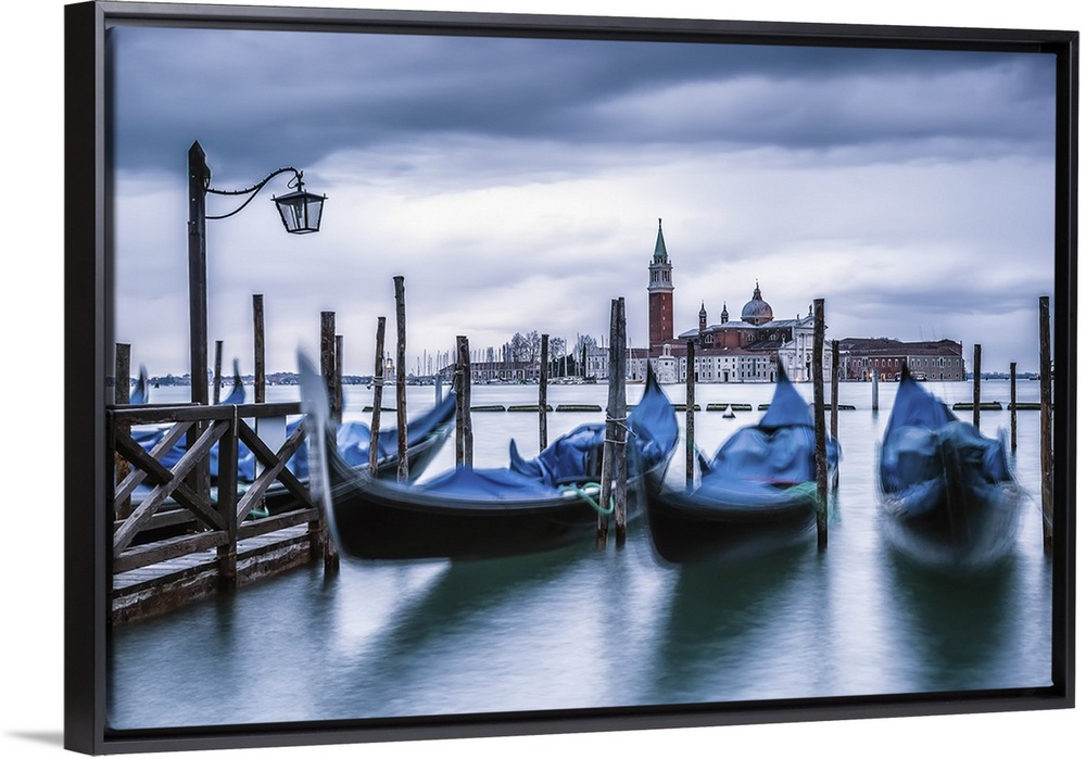 <p>Italy, Veneto, Venice. Gondolas at dawn with San Giorgio Maggiore church on the background.</p>
