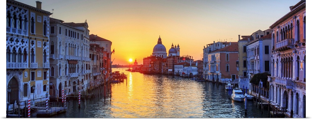 <p>Italy, Veneto, Venetian Lagoon, Adriatic Coast, Venezia district, Venice, Grand Canal, Santa Maria della Salute and the Grand Canal at sunrise</p>