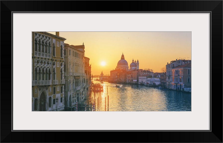 <p>Italy, Veneto, Venetian Lagoon, Adriatic Coast, Venezia district, Venice, Grand Canal, Santa Maria della Salute and the Grand Canal at sunrise</p>