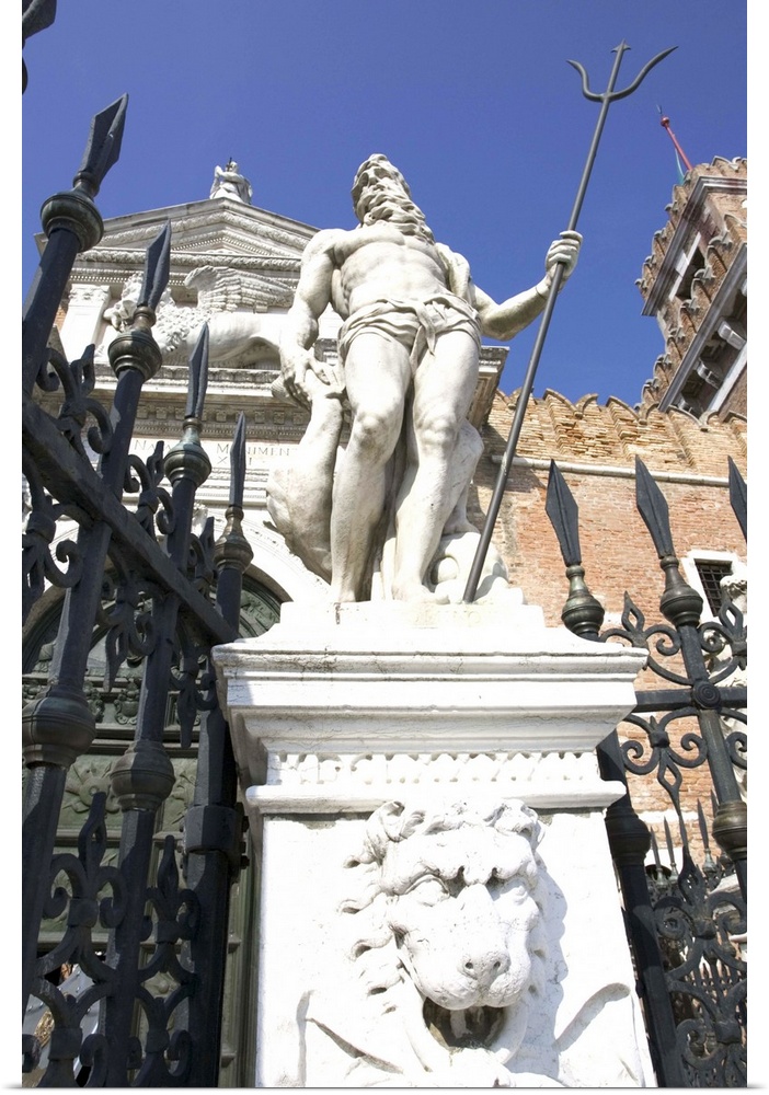 <p>Europe, Italy, Venice. Statue of Neptune in front of the Arsenal.</p>
